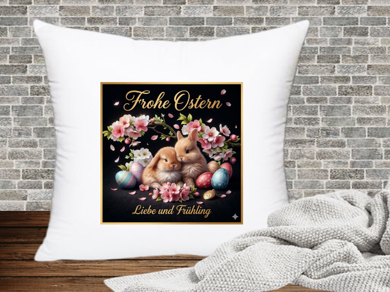 Hier ist eine liebevolle und frühlingsfrische Shop-Beschreibung für dein Kissen mit dem Titel „Frohe Ostern, Liebe und Frühling“: